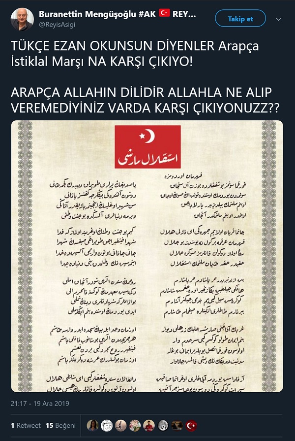 İstiklal Marşı’nın aslının Arapça olduğunu sanan paylaşım