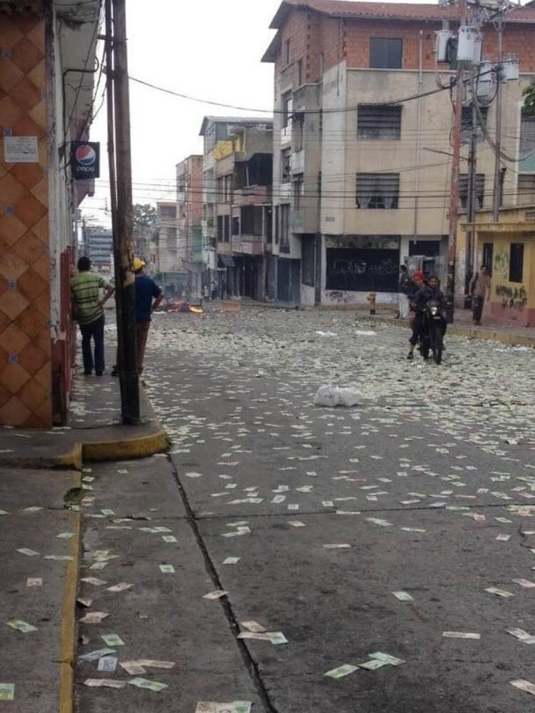 Yerel haber kanalı Maduradas.com‘un yayınladığı haberde bankayı yağmalayan faillerin Venezüela’nın eski para birimini sokaklara saçtığı detayı şöyle aktarılmış (Google Translate’ten istifade edilmiştir):