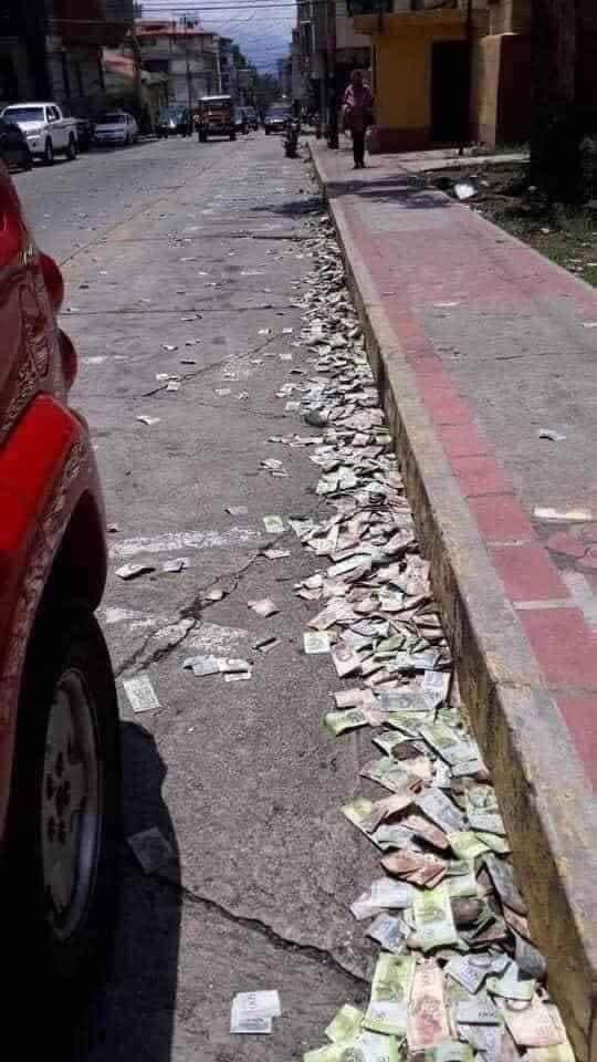 Öncelikle belirtmek gerekir ki, fotoğrafta yerde bulunan para birimi Venezüela’nın eski para birimi. Yaşanan enflasyonist süreç ile mücadele tedbirleri kapsamında Venezüela bolivarının ismi 1 Ocak 2008 tarihinden itibaren “bolivar fuerte” olarak değiştirilmişti. Ancak, 20 Ağustos 2008 tarihinde eski para birimi bolivarın yerini “bolivar soberano” adlı yeni para birimi almıştı. 5 Aralık 2018 tarihinden itibaren ise bolivar fuerte emisyondan çekilmişti. Yani, yerlerde görülen banknotlar 2008 yılı Ağustos ayında yeni bir para birimi bolivar soberano ile değiştirilen ve 5 Aralık 2018’den sonra herhangi bir geçerliliği kalmayan Venezuela’nın eski para birimi olan bolivar fuertedir. Banknotların sokaklara atılmasının sebebi değerinin düşüklüğü değil, bir hükmünün kalmamasıydı.