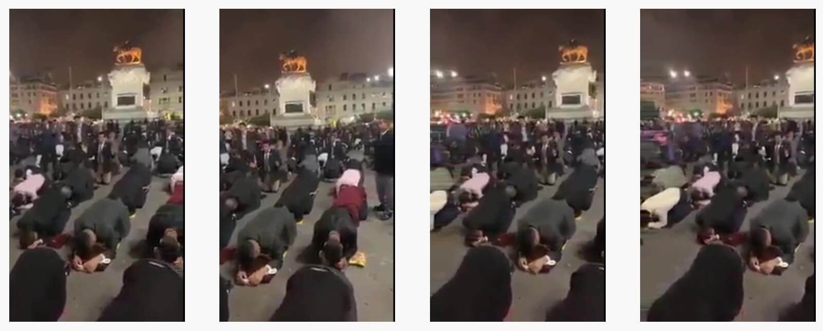 “İtalya halkı Müslümanlarla beraber secde ediyor” notuyla sosyal medyada paylaşılan video aslında Peru’nun başkenti Lima’daki General San Martin meydanında 7 Aralık 2019 tarihinde çekilmiş. Videoda halk koronavirüsten ötürü değil seçimler ve ülkenin yaşadığı siyasi kriz nedeniyle secdeye kapanmış. Secdeye kapanan kitlenin Müslüman olduğuna dair bir emare yok.