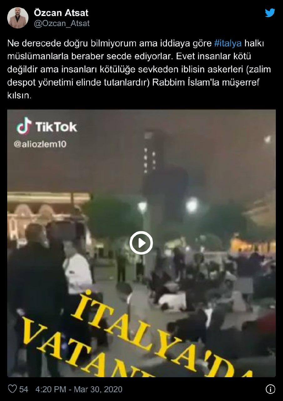 “İtalya halkı müslümanlarla beraber secde ediyor” vurgusuyla paylaşılan bahse konu video kaydı şu şekilde:
