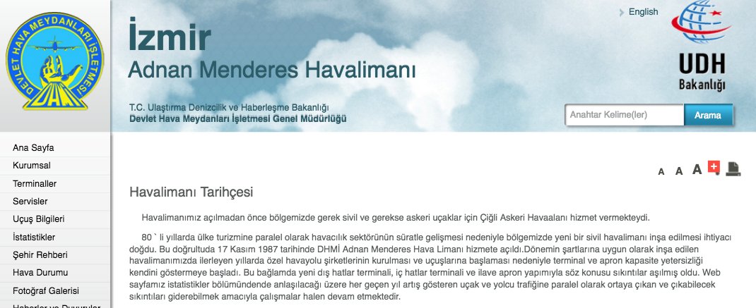 Ulaştırma ve Altyapı Bakanlığı DHMİ internet sitesinde Adnan Menderes Havalimanı’nın tarihçesi şöyle özetlenmişti:
