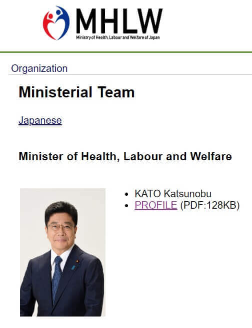 Günümüzde Japonya Sağlık, Çalışma ve Refah Bakanlığının başında Katsunobu Katō bulunuyor.
