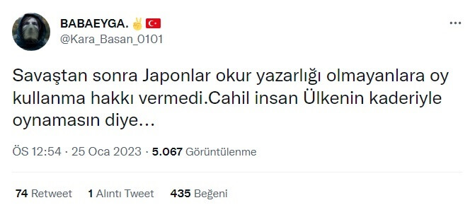 İLAVE: Asılsız iddia bu defa “lise mezunu olmayanlardan”, “okur yazarlığı olmayanlara” evrilmiş (Japonya’da geçmişte oy verme hakkı sadece okuryazar nüfusa tahsis edilmiş değil).