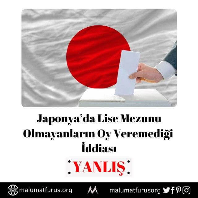 Japonya’da lise mezunu olmayan kişilerin oy kullanamadığı iddiası asılsızdır. Japonya’da 18 yaşını dolduran tüm vatandaşlar eğitim düzeyinden bağımsız olarak seçme ve seçilme hakkına sahiptir. Japonya İçişleri Bakanlığı’nın internet sitesinde 18 yaş ve üzerindeki tüm ferlerin oy kullanabileceği belirtilmektedir. Japon hükümetinin seçmen olabilme şartları arasındaki düzenlemelerinde lise mezunu olmayan bireylerin oy kullanamaması yönünde bir kısıtlamanın varlığına rastlanılmamaktadır.