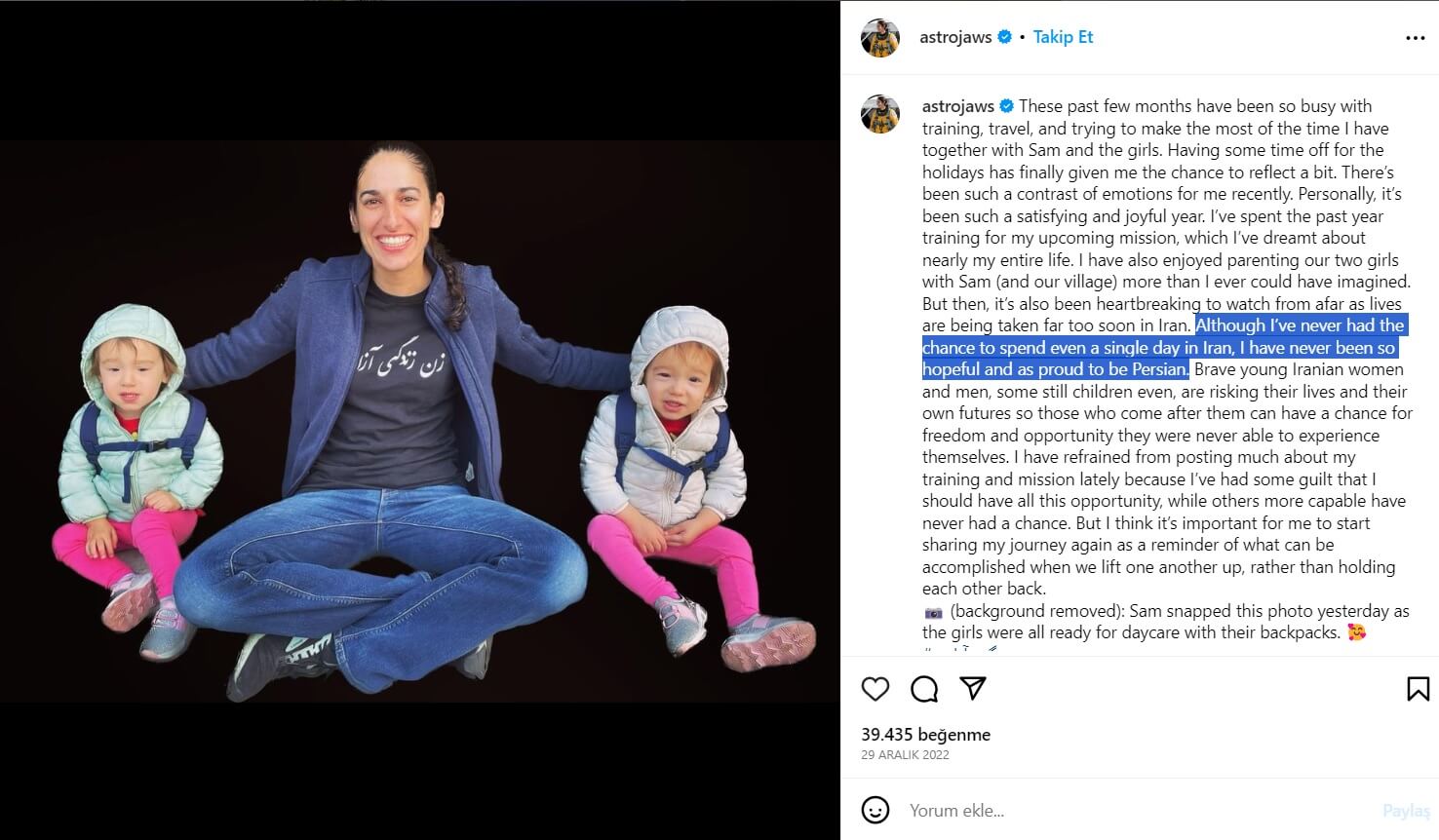 “Jasmin Moghbeli’nin, kendisini Fars olarak kabul ettiği ve Farsça konuştuğu gün gibi ortadayken, söz konusu kadın astronotu ‘Kürt’ olarak medyaya sunmak nasıl bir medya amatörlüğü ve medya bilgisizliğidir?”