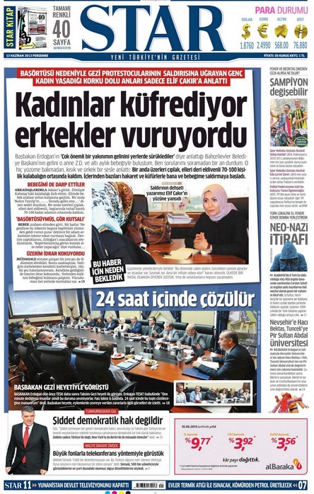 İLAVE: CNN Türk’teki Dört Bir Taraf adlı programda Nagehan Alçı “25 yaşında gencecik bir hanım sırf başörtüsü taktığı için sokakta 100’lerce kişiden oluşan bir vandal grubun ortasında kaldı. Bakın 6 aylık bebeğiyle sırf başörtüsü taktığı için bir kadın inanılmaz hakaretlere uğradı. Onu bırakın bayılmış üzerine çok afedersiniz burada söylemek istemiyorum çok kötü şeyler yapılmış, idrar kokusuyla kendime geldim diyor bebeğimi aradım bebeğim sütten kesildi diyor.” ifadelerini kullanırken, Nazlı Ilıcak da Star gazetesinin manşetinde bu aktarımın yer aldığını belirtmişti.