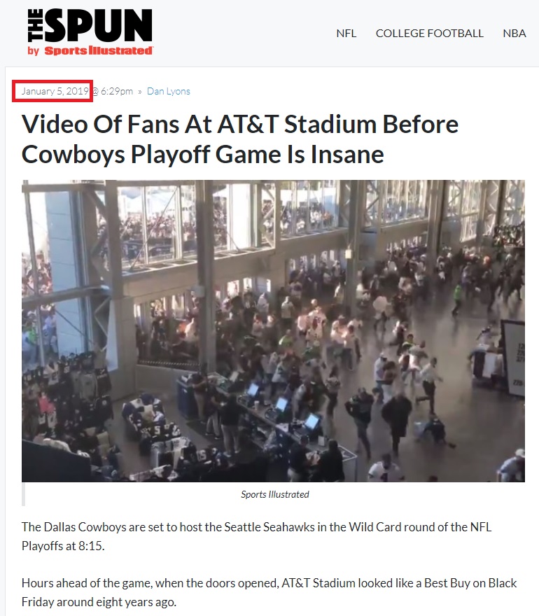 Sports Illustrated’in kaynak gösterildiği görüntü thespun.com’da 5 Ocak 2019 tarihinde yayımlanan “Video Of Fans At AT&T Stadium Before Cowboys Playoff Game Is Insane.” başlıklı yazıda kullanıldığı görülebiliyor.