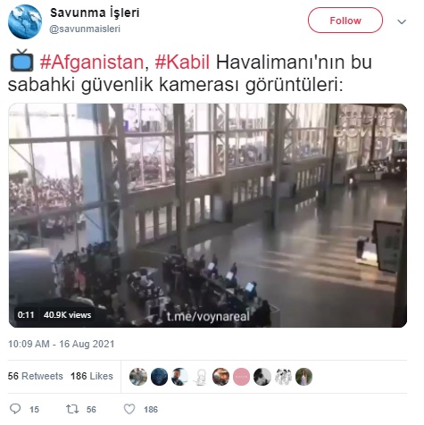Bunlardan biri Kabil Havalimanına yönelen kalabalığın görüntülendiği güvenlik kamerasından alındığı iddiasıyla paylaşılan videoydu.