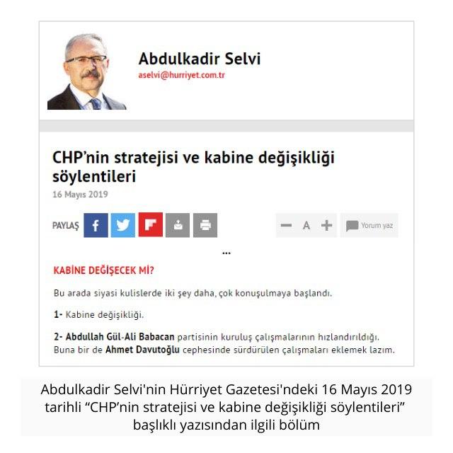 2- Abdullah Gül-Ali Babacan partisinin kuruluş çalışmalarının hızlandırıldığı. Buna bir de Ahmet Davutoğlu cephesinde sürdürülen çalışmaları eklemek lazım.”