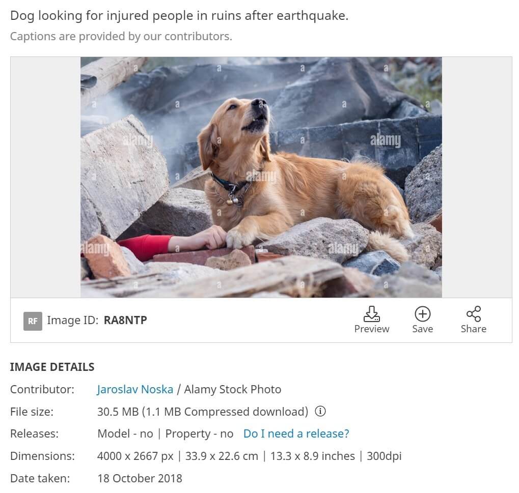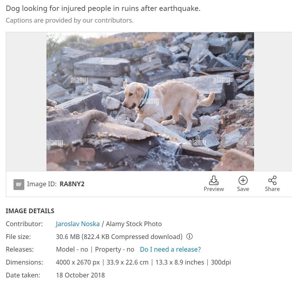 Deprem enkazında görüntülenen arama kurtarma köpeğine ait fotoğraflar eski tarihli.