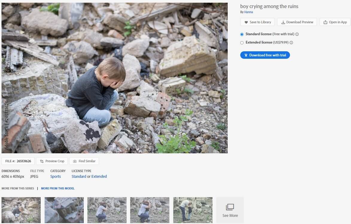 Enkaz arasında ağlarken yüzünü kapatan çocuğun görüldüğü fotoğraf da Kahramanmaraş depremlerinin öncesinden… Adobe’un stok fotoğrafları arasında yer alan fotoğraf son depremlerle ilişkilendirilmiş.