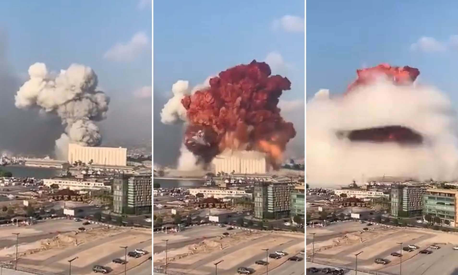 Beyrut’taki Patlamanın Patlayıcı Dolu Deponun Füze ile Vurulduğu Andan Sanılan Videolar