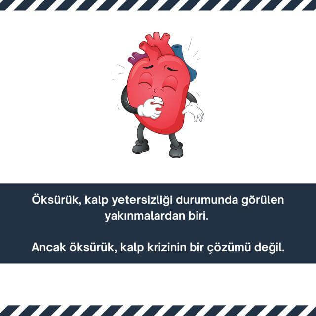Öksürük, kalp yetersizliği durumunda görülen yakınmalardan biri. Ancak öksürük, kalp krizinin bir çözümü değil.