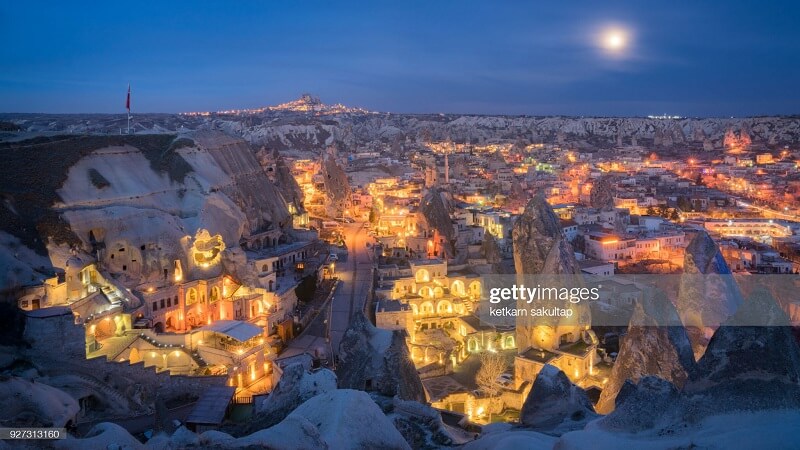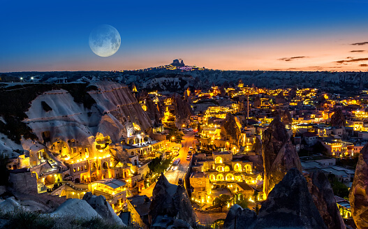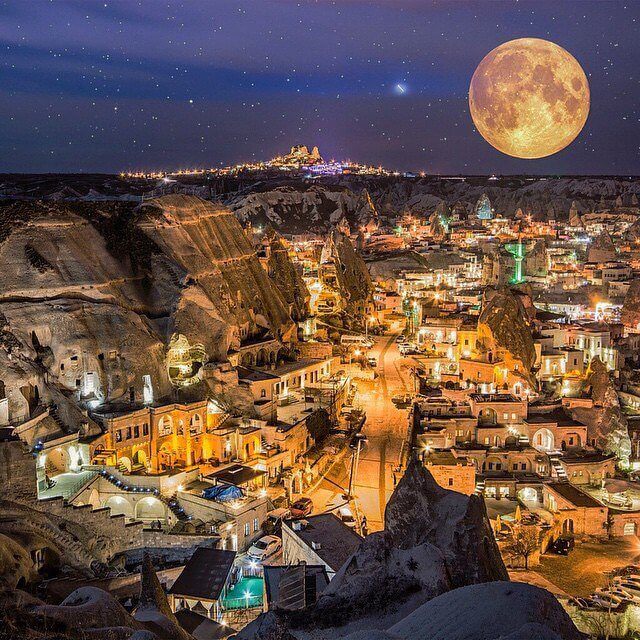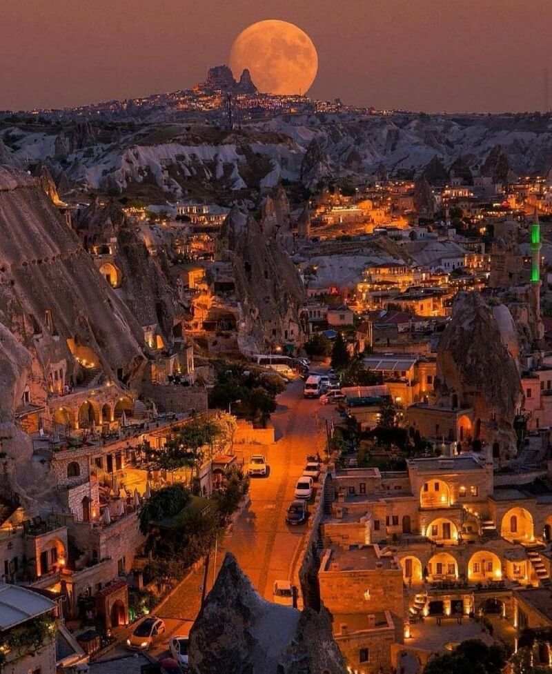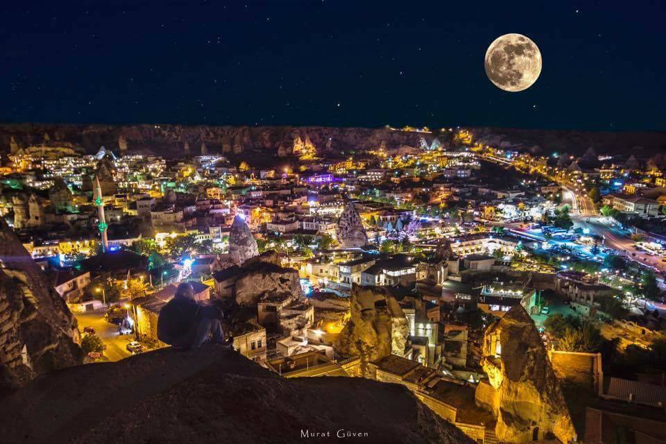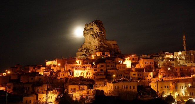 Göreme’den Uçhisar Kalesi manzarası gerçekten çarpıcı. Ancak, Dolunay Göreme’den Uçhisar Kalesi’ne doğru bakıldığında bu büyüklükte görülmez…