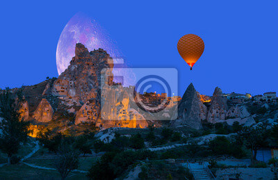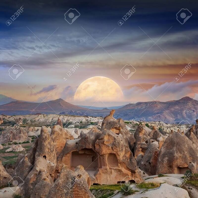 Sosyal Medyada Paylaşılan Kapadokya Bölgesinde Göreme’den Uçhisar Kalesine Doğru Ay Manzaralı Fotoğraf Dijital Düzenleme İçeriyor
