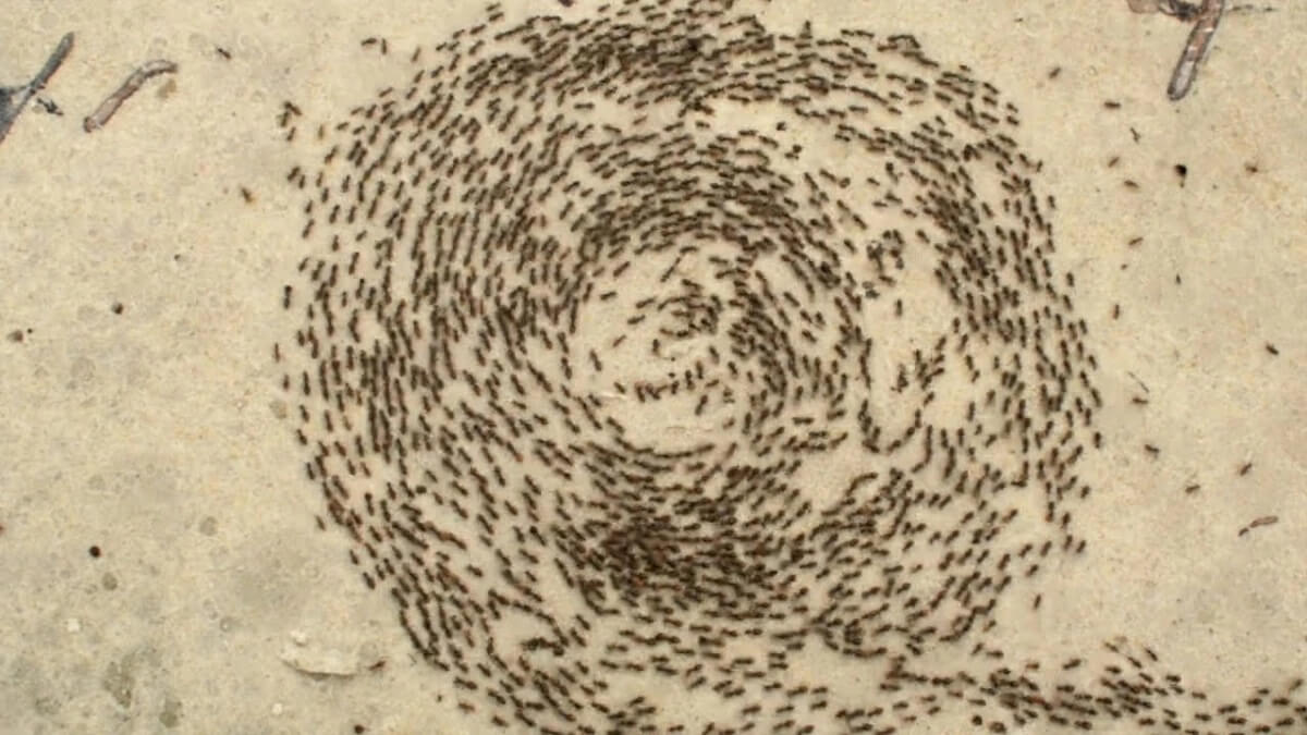 Karıncaların feromon izlerini takip ederken bir çember içinde dönmelerine neden olan bu nadir fenomene ait olduğu sanılan bir görüntü geçtiğimiz günlerde sosyal medya platformlarında dolaşıma girdi.