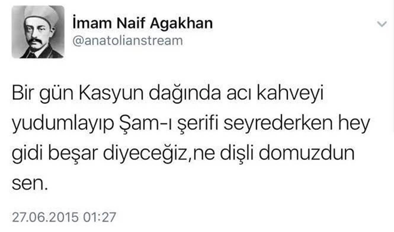 “Bir gün Kasyun dağında acı kahveyi yudumlayıp Şam-ı Şerif’i seyrederken…”