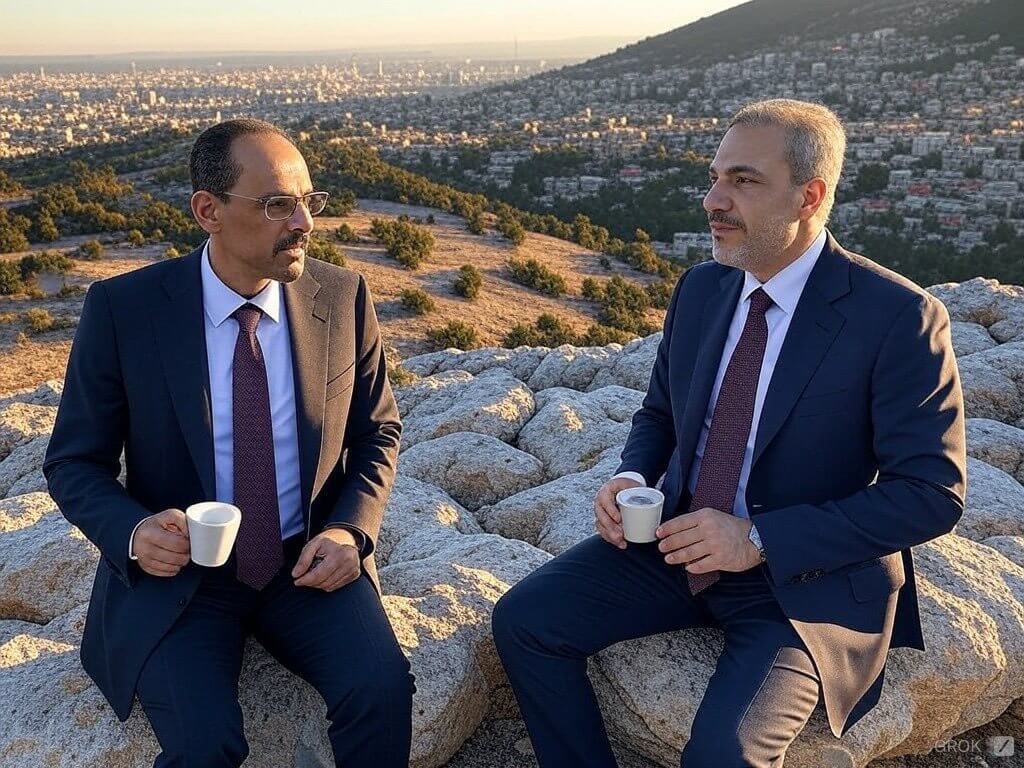 X’in yapay zekâ uygulaması Grok ile Dışişleri Bakanı Hakan Fidan ve MİT Başkanı İbrahim Kalın’ın Kasiyun Dağı’ndan Şam manzarasını izlerken resmedildiği görsel, “fotoğraf” olarak lanse edildi.