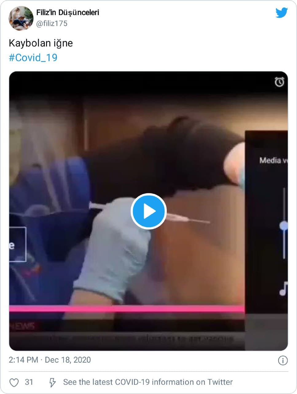 Halk arasında koronavirüs salgınına (Covid-19) karşı geliştirilen aşı çalışmaları hakkında şüphe uyandırmak amacıyla manipüle edilen birçok içerik sosyal medyada paylaşılıyor. Bu içeriklerden biri koronavirüs aşısı yapıldığı algısıyla insanların kandırıldığı iddiasını içeriyor. Aşı karşıtı ya da koronavirüs salgınının gerçek olmadığına inanan sosyal medya kullanıcılarının aşı uygulamasına dair video kayıtlarda iğnenin kaybolduğunu ve bu nedenle aşının gerçek olmadığını iddia ettiği görülüyor.