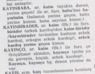 Örneğin, İsmet Zeki Eyüboğlu’nun Türk Dilinin Etimoloji Sözlüğü’nde (Sosyal Yayınlar. İstanbul) kayınbaba, kayınbirader, kayınço kelimeleri için bu yönde bir açıklama sunulmuştu.