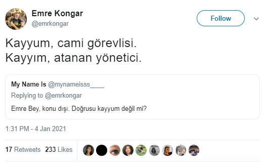 Emre Kongar: “Kayyum, cami hizmetlisine deniyor. Birinin yerine aynı yetkilerle atanan yöneticiye hukuk dilinde kayyım deniyor.”