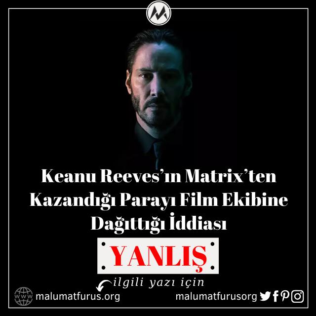 Keanu Reeves’ın Matrix’ten elde ettiği geliri film setine dağıttığı iddiasını içeren metin şöyledir: