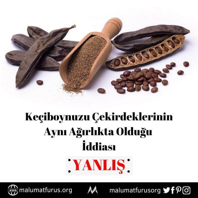 Ancak, sosyal medyada aktarılan iddia keçiboynuzu çekirdeğinin değişmez bir ağırlık ölçüsü olması nedeniyle kullanıldığı yönünde.