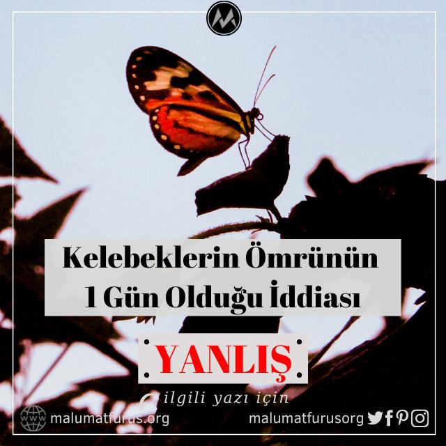Kelebeklerin ömrü kısadır. Ancak, ömürleri sadece 1 (yazıyla bir) gün değildir. Genel kabul görmüş bu inanış yanlıştır.