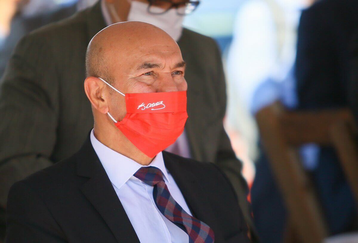 İzmir Büyükşehir Belediye Başkanı Tunç Soyer, katıldığı törende Kemal Atatürk imzasını taşıyan kırmızı bir maske takmıştı.