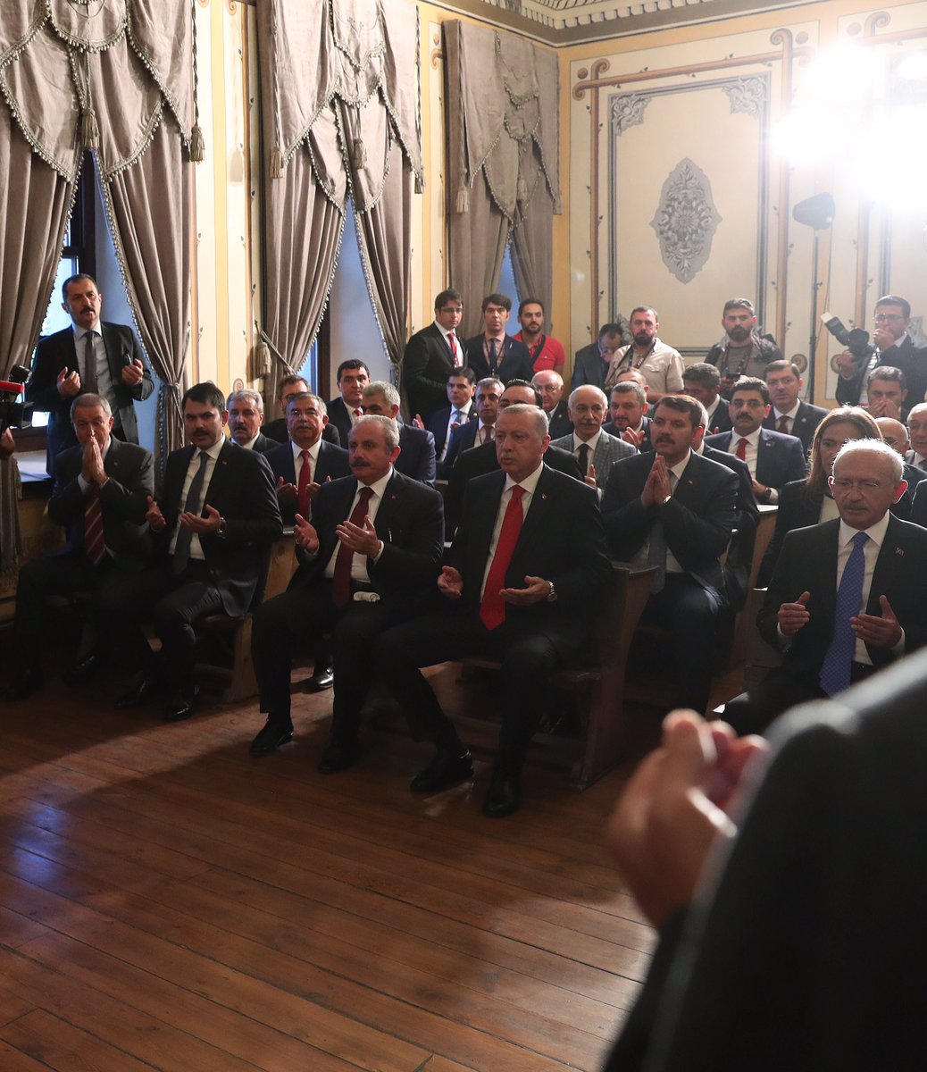 Cumhurbaşkanı Erdoğan, TBMM Başkanı Mustafa Şentop, CHP Genel Başkanı Kemal Kılıçdaroğlu, Milli Savunma Bakanı Hulusi Akar, Kültür ve Turizm Bakanı Mehmet Nuri Ersoy, Çevre ve Şehircilik Bakanı Murat Kurum, Ulaştırma ve Altyapı Bakanı Mehmet Cahit Turhan, Sivas Valisi Salih Ayhan, BBP Genel Başkanı Mustafa Destici, AK Parti, CHP ve MHP genel başkan yardımcıları, milletvekilleri, İstanbul Büyükşehir Belediye Başkanı Ekrem İmamoğlu canlandırmayı izlemişti.