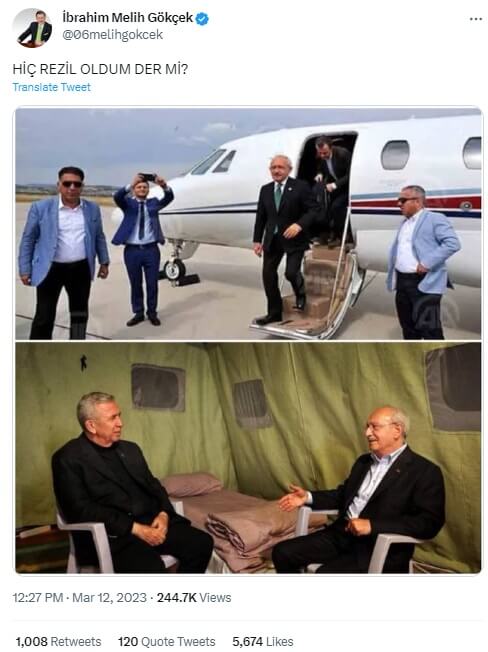 Misvak Caps: “İşleri, güçleri algı! Kılıçdaroğlu Özel jetiyle şov yapacağı çadır bölgesine gitmiş.”