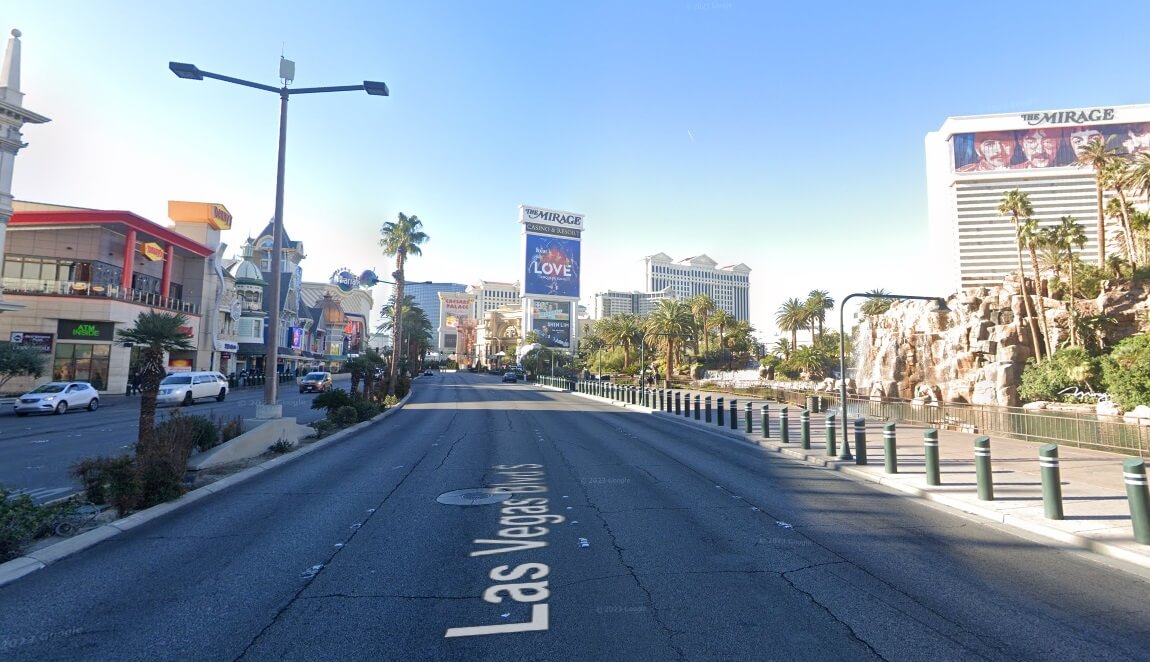 Görüntü, ABD’nin Nevada eyaletindeki Las Vegas kentinin en işlek caddelerinden biri olan Strip (3370 Las Vegas Bulvarı) üzerindeki Mirage Otel’inin önünden.