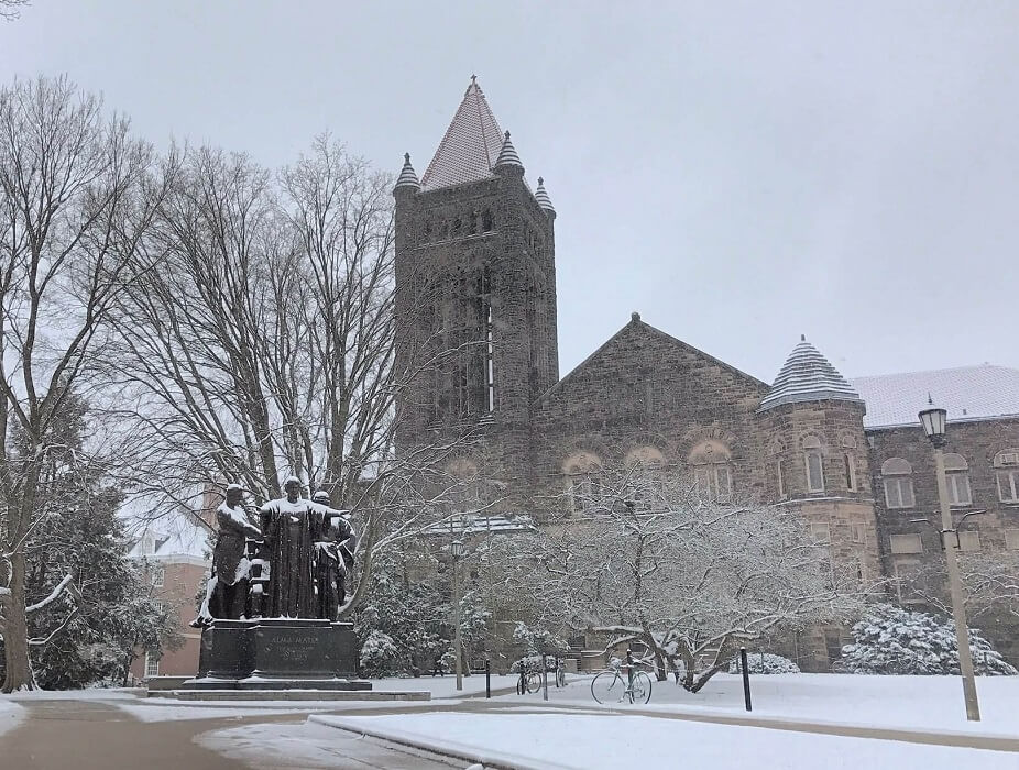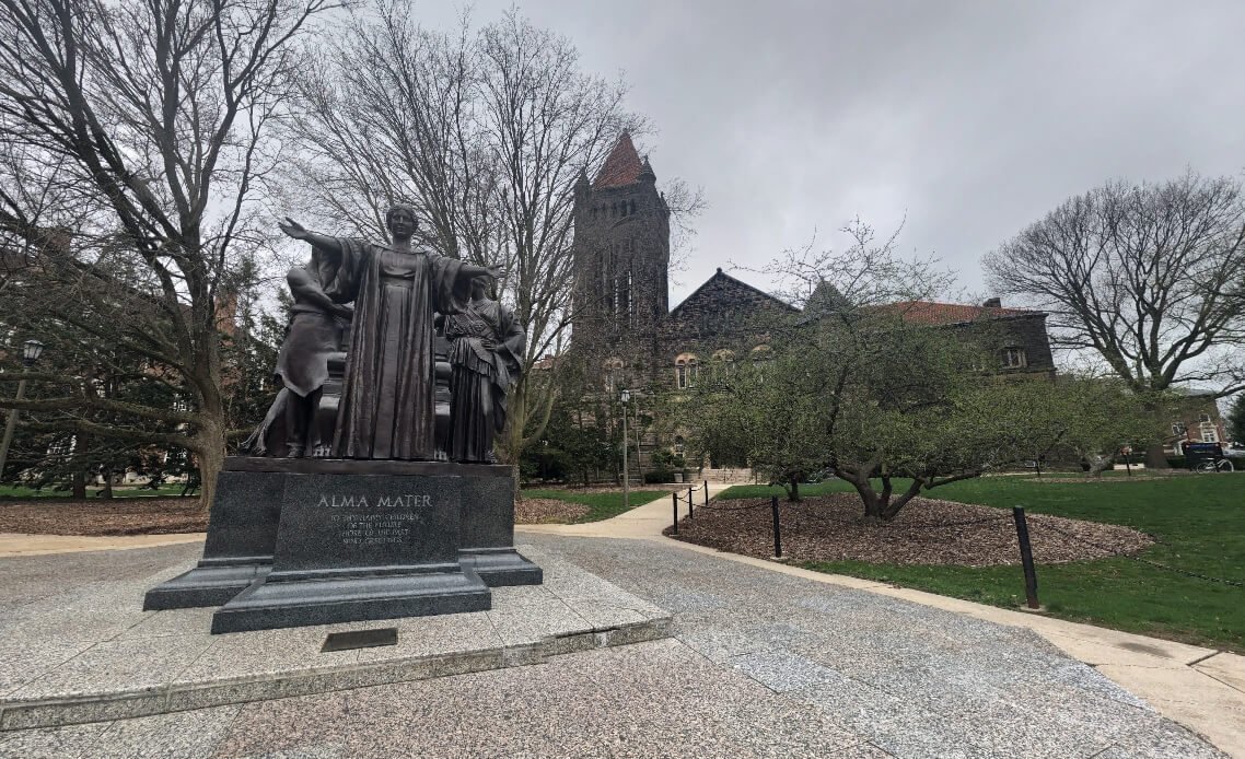 Fotoğrafın Illinois Üniversitesi kampüsündeki Altgeld binası ve önündeki heykel arka plana alınarak kaydedildiği doğrulanabiliyor.