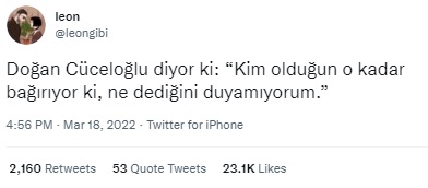 “Kim olduğun o kadar bağırıyor ki, ne dediğini duyamıyorum.” sözünün sahipliğinin psikolog, akademisyen ve yazar Doğan Cüceloğlu’na (1938 – 16 Şubat 2021) Savaşçı adlı kitabında geçtiği belirtilerek paylaşıldığı görülüyor.
