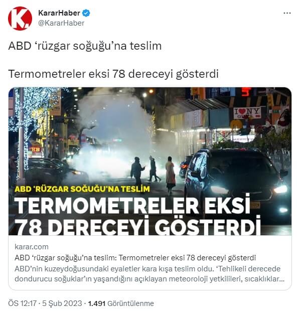 Örneğin Karar Haber, ABD’de termometrelerin -78 dereceyi gösterdiği yönündeki haberinde Fahrenheit – Celcius çevrimi yapmaktan imtina etmiş.
