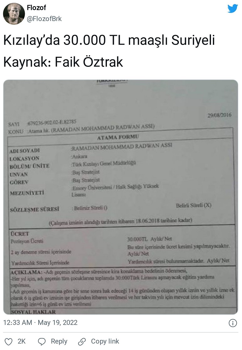 “Kızılay’da 30.000 TL maaşlı Suriyeli