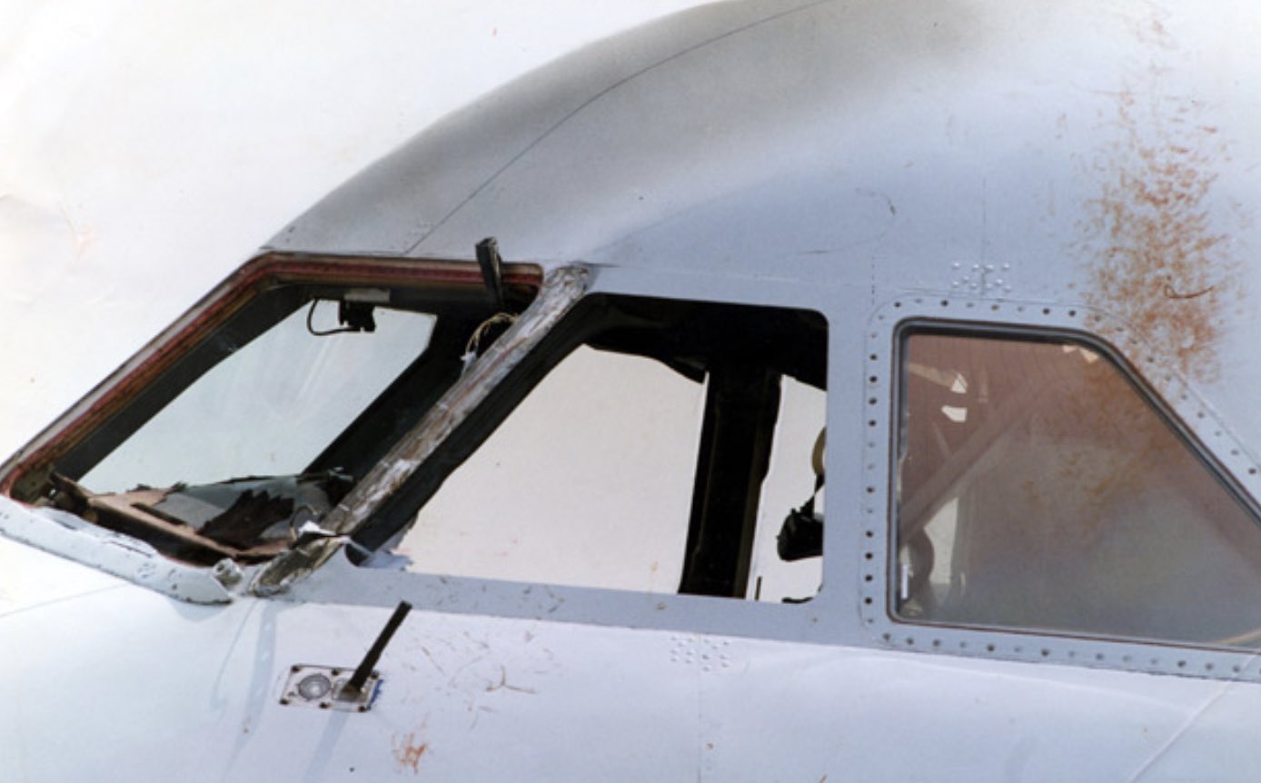 - BAC 1-11 tipi uçak 16.000 fit yükseklikte seyrederken uçağın sol ön kokpit camı bir anda patladı.