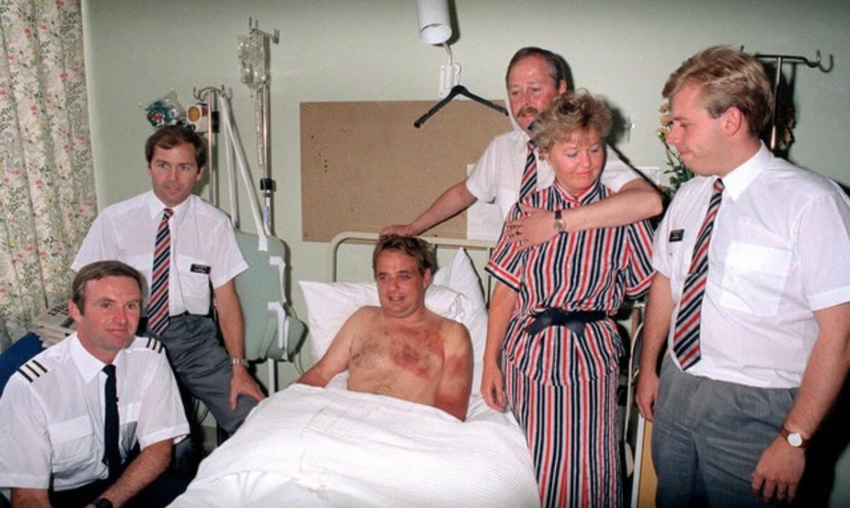 British Airways’in 10 Haziran 1990 Tarihli 5390 Sayılı Uçuşu Esnasında Kırılan Kokpit Camından Fırlayan Pilotun Uçuş Ekibi Tarafından Ayaklarından Yakalanarak Tutulduğu Aktarımı Doğru