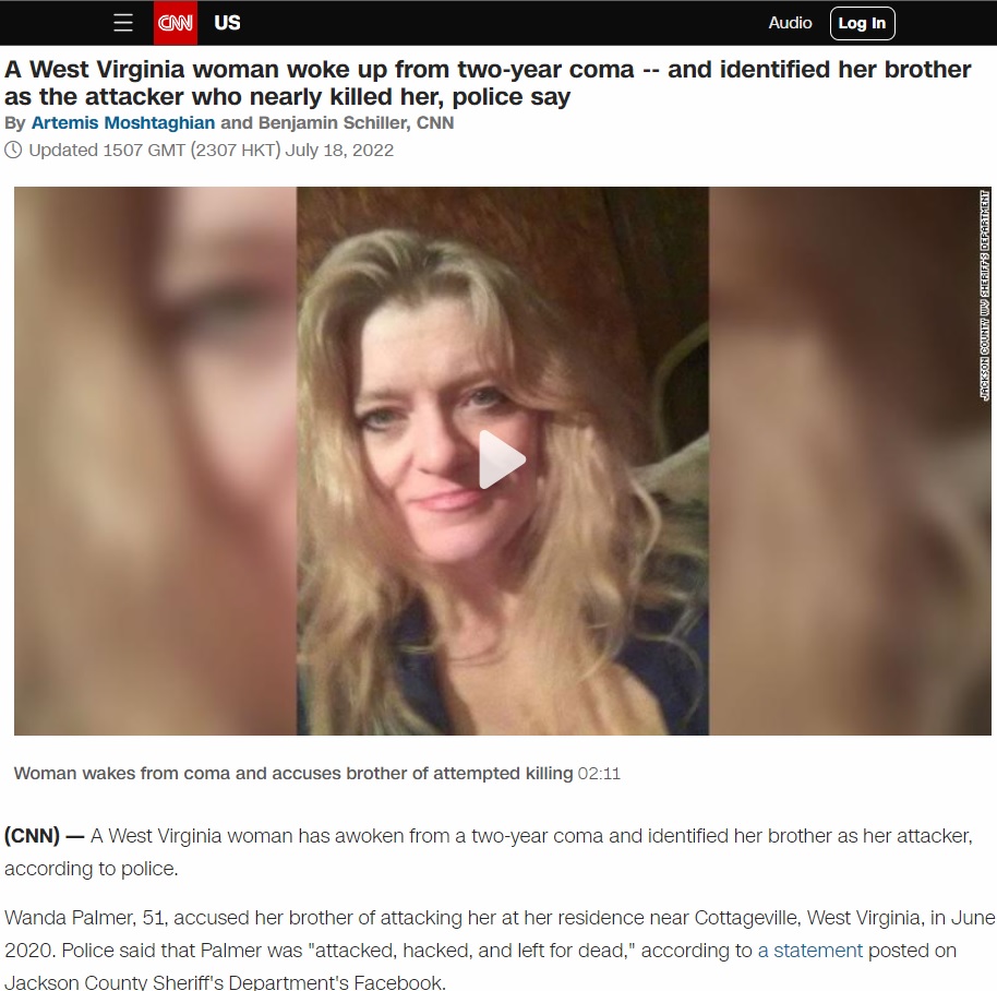Wanda Palmer, Haziran 2020’de ABD’nin Batı Virginia eyaletinde yer alan Cottageville kasabasındaki evinde kanlar içinde bilincini kaybetmiş bir şekilde polis tarafından bulunmuştu. Komaya girdikten 2 yıl sonra bilinci yerine gelen Wanda Palmer, kendisine saldıranın erkek kardeşi Daniel Palmer olduğunu açıklamıştı. Polis, suçlanan erkek kardeşi yakalayarak tutuklamıştı.