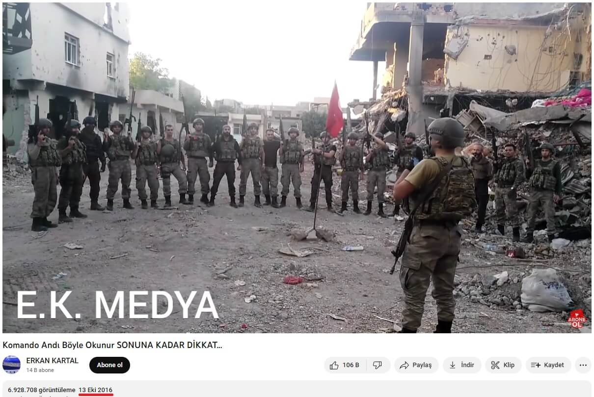 “E.K. Medya” notunu taşıyan video, 2016 yılında Erkan Kartal adlı Youtube kanalına yüklenmiş.