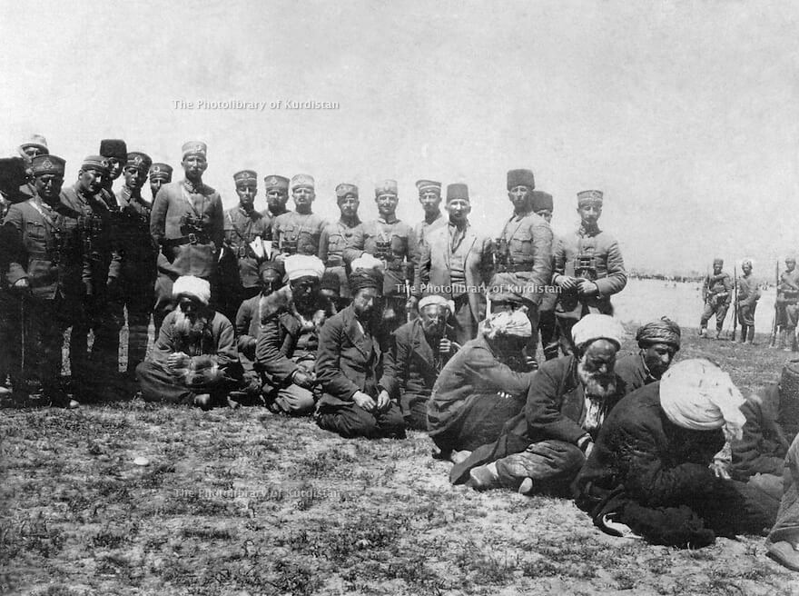 “Türkiye 1925. Şeyh Said ve işbirlikçileri Türk ordusu tarafından esir alındı. Arkasında duran fesli, Genç Bey’in valisi İsmail Hakkı Bey.”