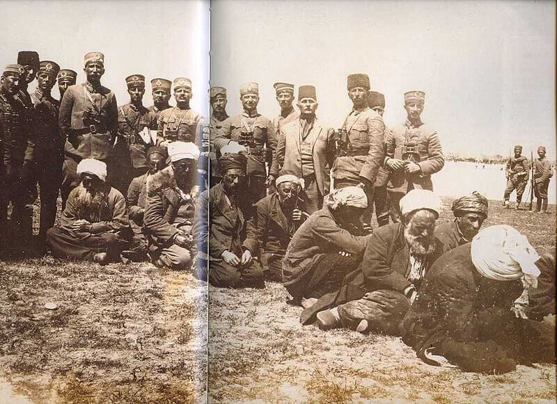 “Turquie 1925.Shaikh Said et ses partisans prisonniers de l’armee turque. Debout, portant un fez, le gouverneur de Genc , Ismail Hakki Bey”
