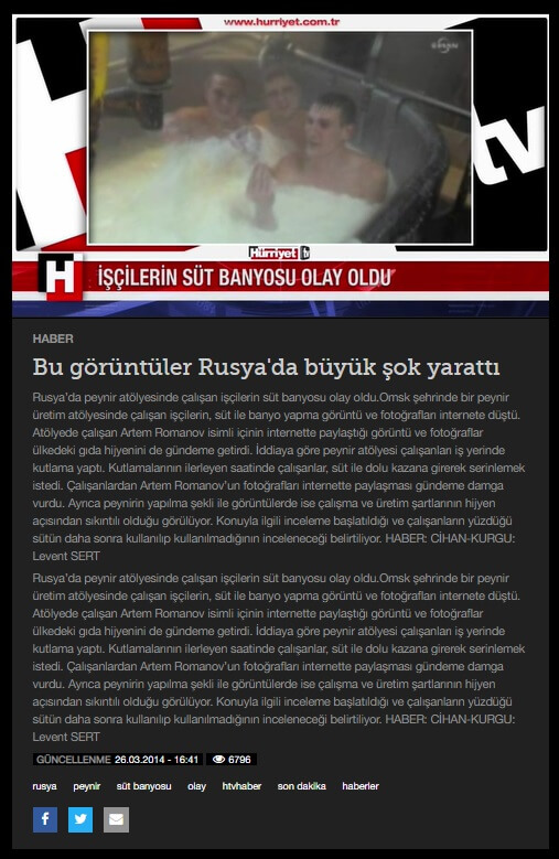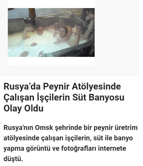 Rusya’da peynir atölyesi çalışanlarının süt banyosuna ilişkin haber 2014 yılında ülkemiz basınına da yansımıştı.