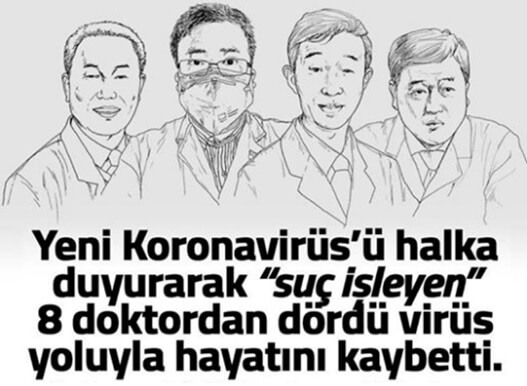 Wuhan hastanesinde çalışan ve ceza alan bu 4 doktor daha sonra salgında öldü. Hayatını kaybeden doktorlar Dr. Ai Fen’in çalışma arkadaşlarıydı.