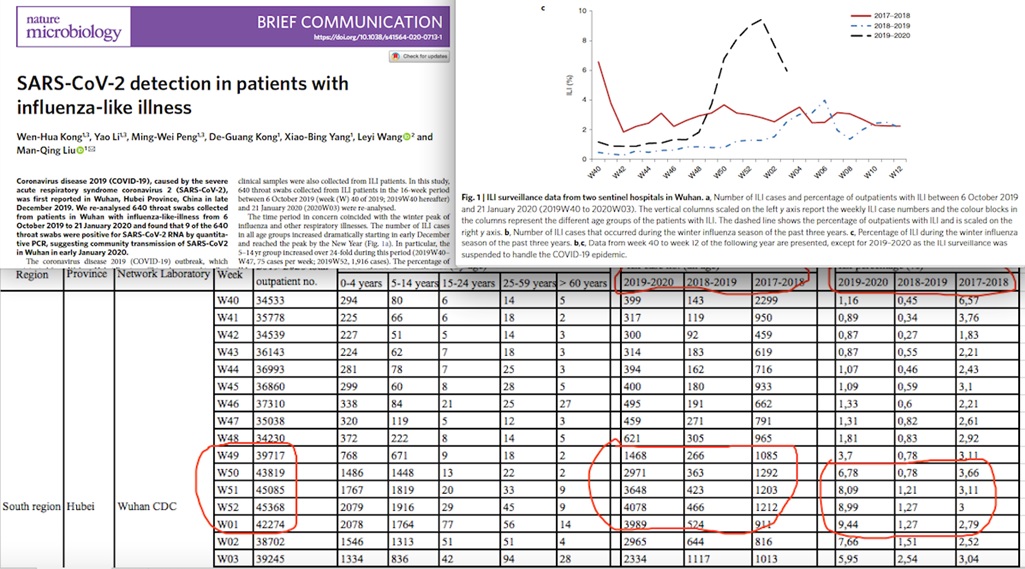 (Çin kaynaklı bu bilimsel makalede “gribe benzeyen ama grip olmayan” bir tür enfeksiyonun 2019 yılının son 2 ayında Wuhan’da önceki yıllara göre çok fazla görüldüğü sayılarla gösterilmişti. Özü şu; Kasım ve Aralık 2019’da Wuhan’da virüs enfeksiyonlarında belirgin bir artış var ama daha henüz “koronavirüs” olarak konmamış)