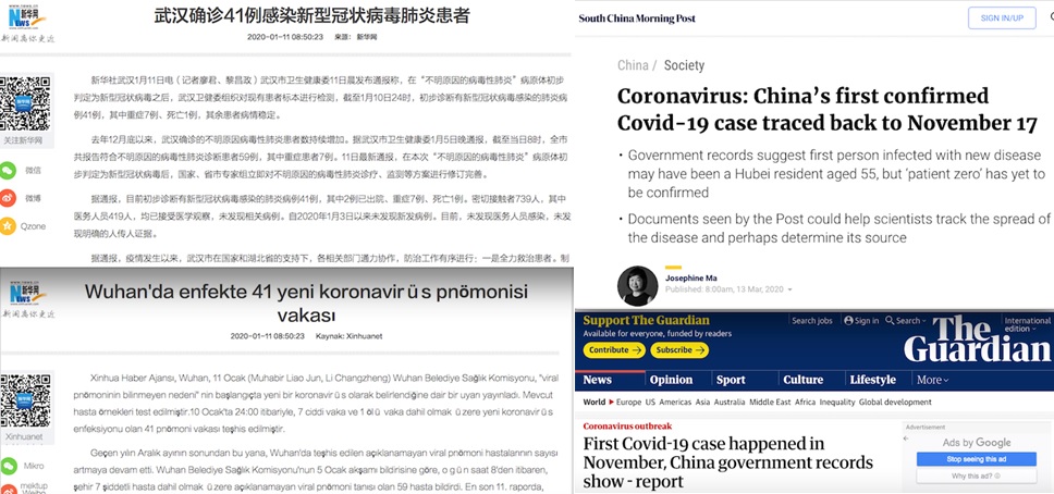 (11 Ocak 2020’de Çin gazetesinde Wuhan’da 59 virüs vakası ve ilk koronavirüs ölüm haberi – İlk vakanın 17 Kasım 2019’da görüldüğü “hasta sıfır” haberi)