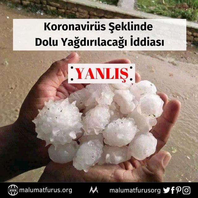 Bir dış etki vasıtasıyla koronavirüsün şekline benzer dolu tanelerinin yağdırılacağı iddiası ise temelsiz olup, hayatın olağan akışıyla ve meteorolojik hadiselerin seyriyle uyumlu değildir.