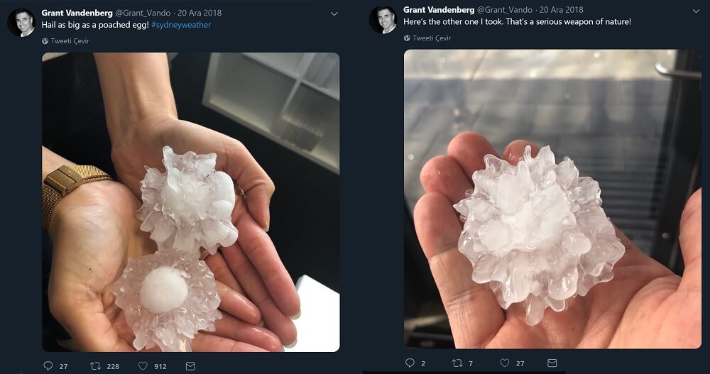 Örneğin, 2018 yılında Avustralya’da yağan benzer şekildeki devasa dolu görüntüleri sosyal medyada ve haber sitelerinde kendine yer bulmuştu. Yine 2018 yılında ABD’nin Teksas eyaletinde benzer büyüklük ve şekilde dolu yağışı görüntülenmişti.