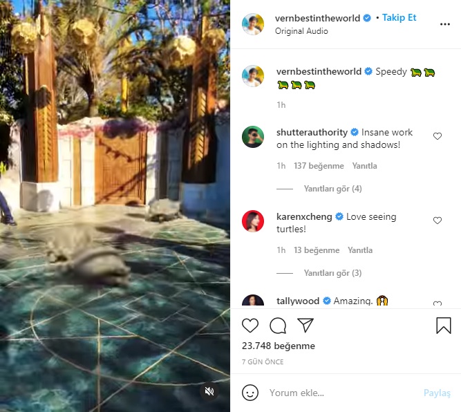 Vernon James Manlapaz’ın dijital ortamda oluşturduğu koşan kaplumbağaların yer aldığı videonun kaynağı sosyal medya paylaşımı: